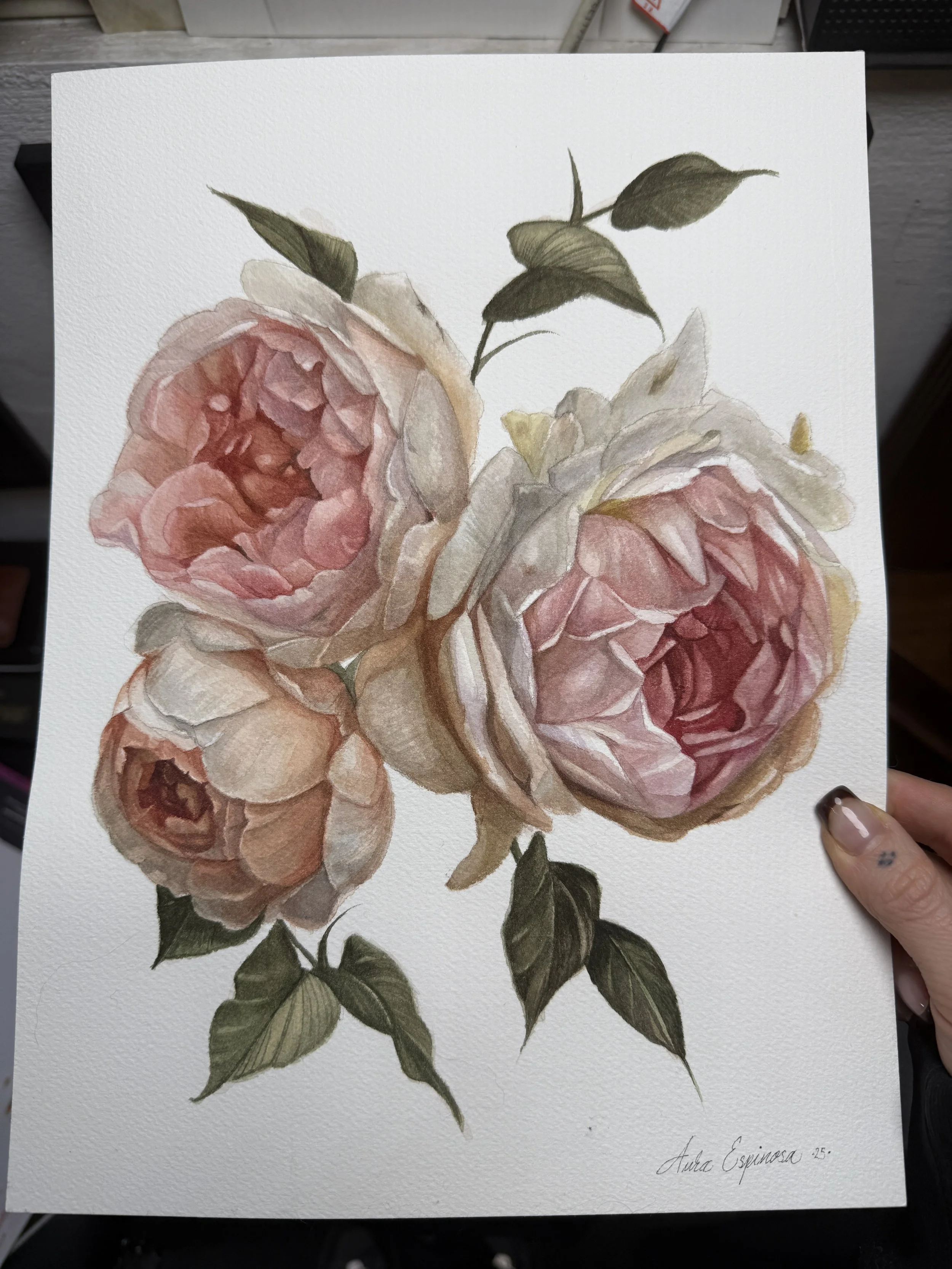 "Mi arte es un secreto susurrado, una suave brisa que agita el polvo de recuerdos olvidados. Con cada pincelada, bailo con flores, musas y objetos antiguos, conjurando un mundo donde la nostalgia no es solo un sentimiento, sino un estado del ser. Como tatuadora durante 18 años, he aprendido a equilibrar la permanencia y la fluidez, permitiendo que la tinta se encuentre con la acuarela y el óleo en mis pinturas. Para mí, lo efímero se vuelve eterno, y el pasado perdura, como el aroma de las rosas en un jardín abandonado, que es a la vez nostálgico y atemporal."